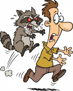 4. El mapache logró morder al hombre.